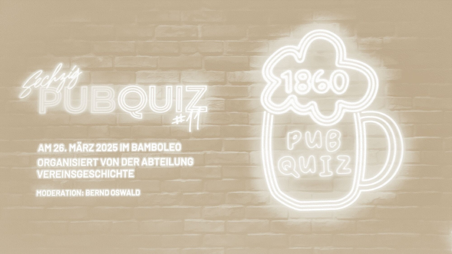 Der TSV 1860 ist einer der traditionsreichsten Sportvereine Deutschlands und blickt auf eine sehr bewegte Geschichte zurück. Die Abteilung Vereinsgeschichte vermittelt mit dem 1860-Pub Quiz unterhaltsam Einblicke in die Historie des TSV 1860 München. Unter der Moderation von Bernd Oswald ist das Format zu einem festen Bestandteil des Vereinslebens geworden.Frei nach dem Motto 18 mal 60 werden insgesamt 18 Fragen gestellt, für die die Teams jeweils 60 Sekunden Zeit haben, um sie gemeinsam zu beantworten. Für diejenigen, die nicht an der letzten Ausgabe teilnehmen konnten, stellen wir nun alle Fragen und Antworten zum Nachspielen nachfolgend zur Verfügung. Wir wünschen viel Spaß!